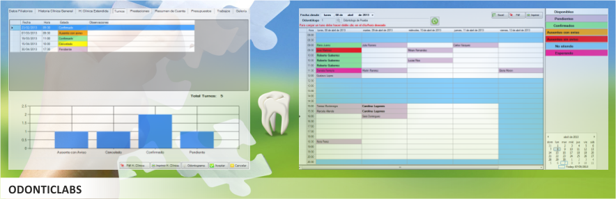 Contar con una agenda de Turnos por profesional agiliza y mantiene organizados los horarios de todo el Consultorio Odontológico.